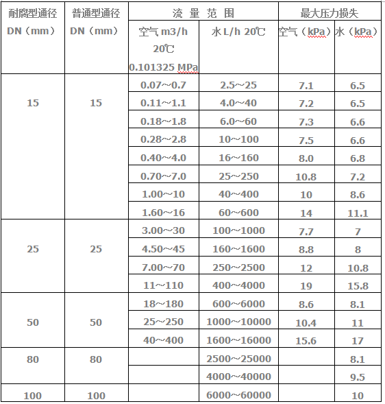 空氣(0.07~2000)m3/h (在 0.101025 MPa、20℃)。