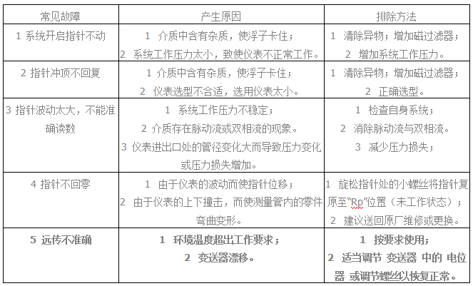 11. 若開啟流量計時,由于管道內沒有壓力或系統(tǒng)還未達到儀表正常使用的工作壓力,必須緩慢開啟控制閥,直到系統(tǒng)正常,儀表方可使用,否則容易造成指針跳動或浮子的突然撞擊而損壞的現象。